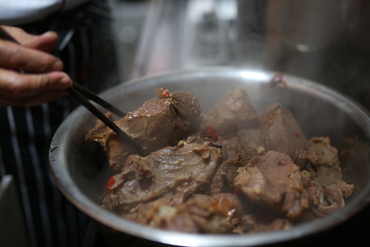 正确切肉:切牛肉时要逆着纹路切,这样可以切断肌肉纤维,让炖煮后的肉质更加嫩滑。